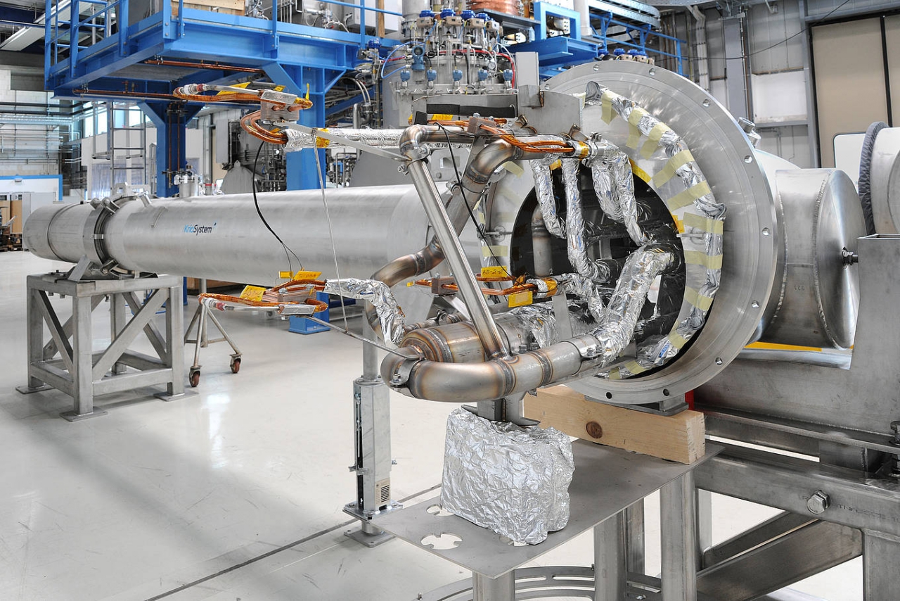 Ohne extreme Kälte geht gar nichts im neuen Beschleunigerring SIS100, dem Herzstück der zukünftigen FAIR-Anlage. Weltweit werden derzeit Komponenten für FAIR neu entwickelt und gebaut, nun ist eine entscheidende Komponente für die Kühlung im 1100 Meter langen Ringbeschleuniger in Darmstadt angekommen: der erste Teil von mehreren Bypass-Leitungen, die um den ganzen Ring angeordnet sind, um den Transport des Kältemittels (flüssiges Helium) an die richtigen Stellen sicherzustellen. Rund 30 solcher Komponenten, jeweils bis zu zwölf Meter lang, garantieren so konstant die benötigte Kälte (von -268,6 °C) im gesamten Ringsystem.