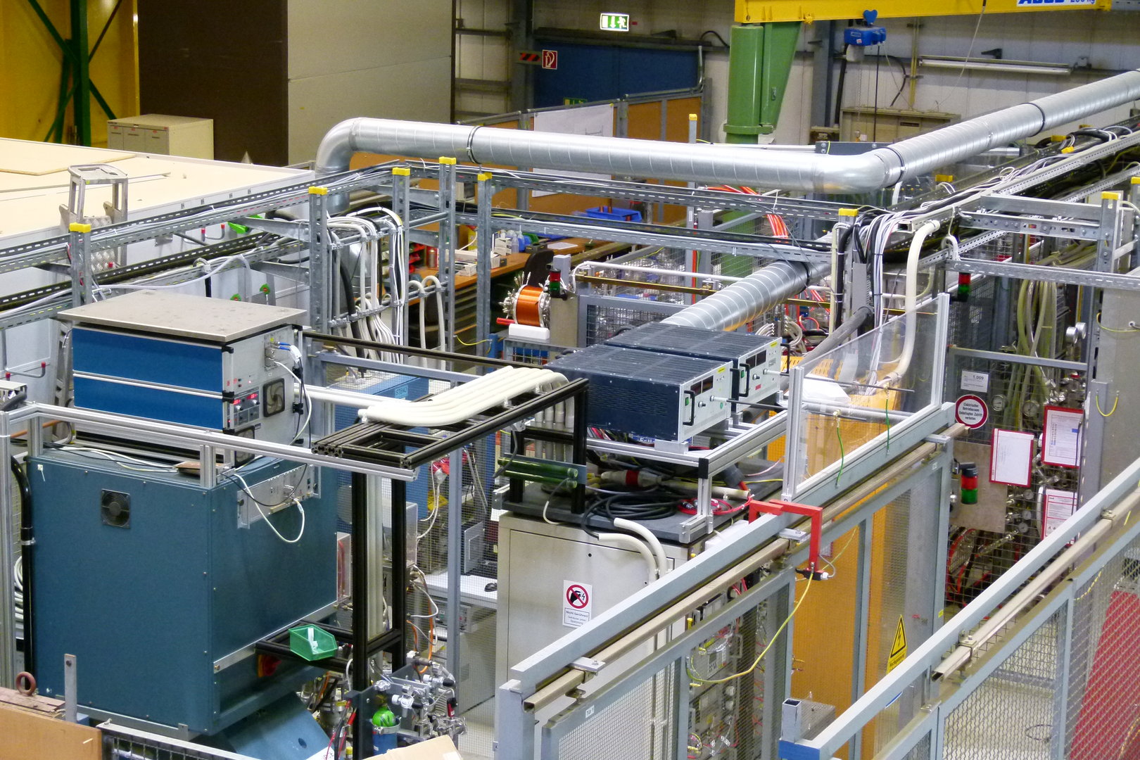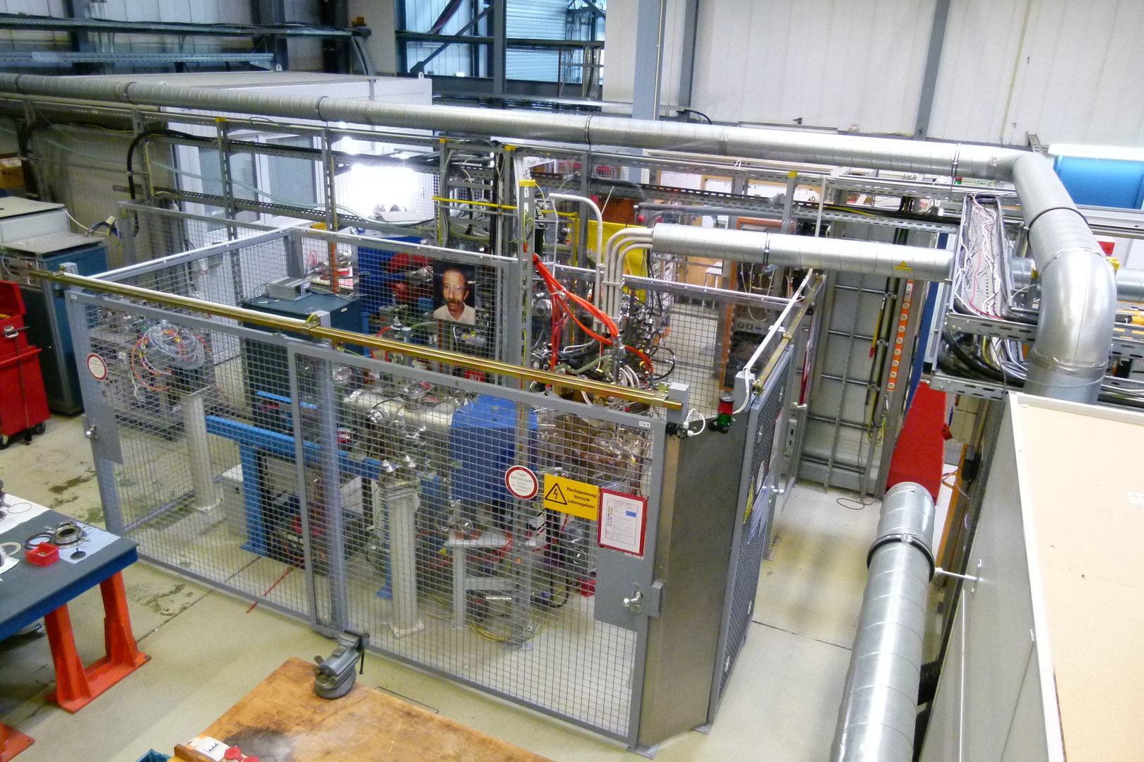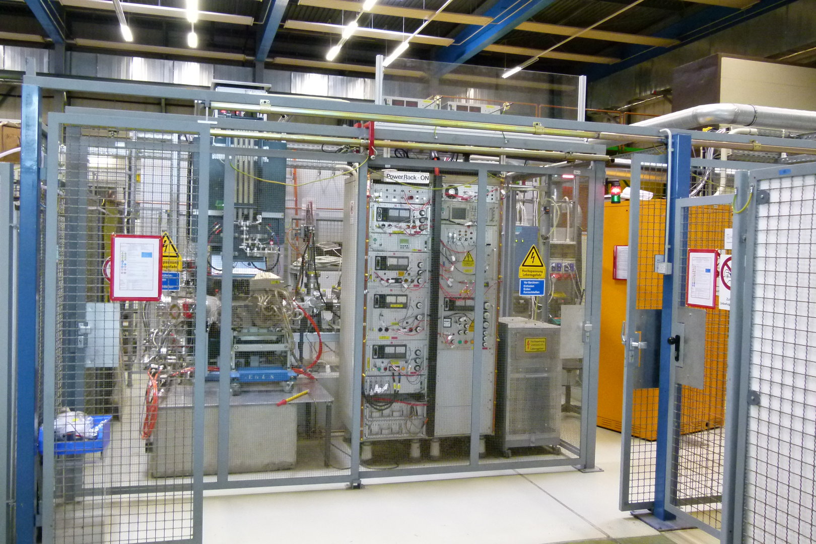 The test bench is equipped with various diagnostics elements for ion beam current and geometric measurements.