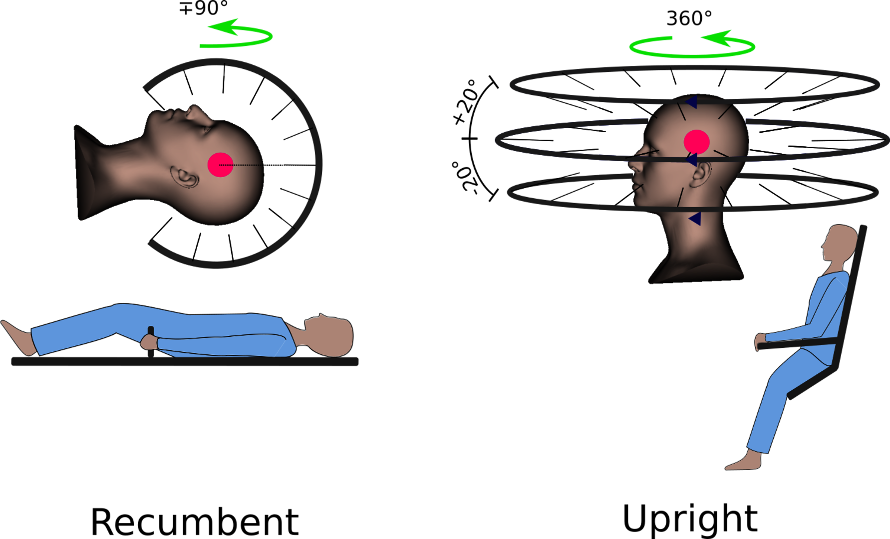 Figure1: Schematic comparison of upright and recumbent patient positioning