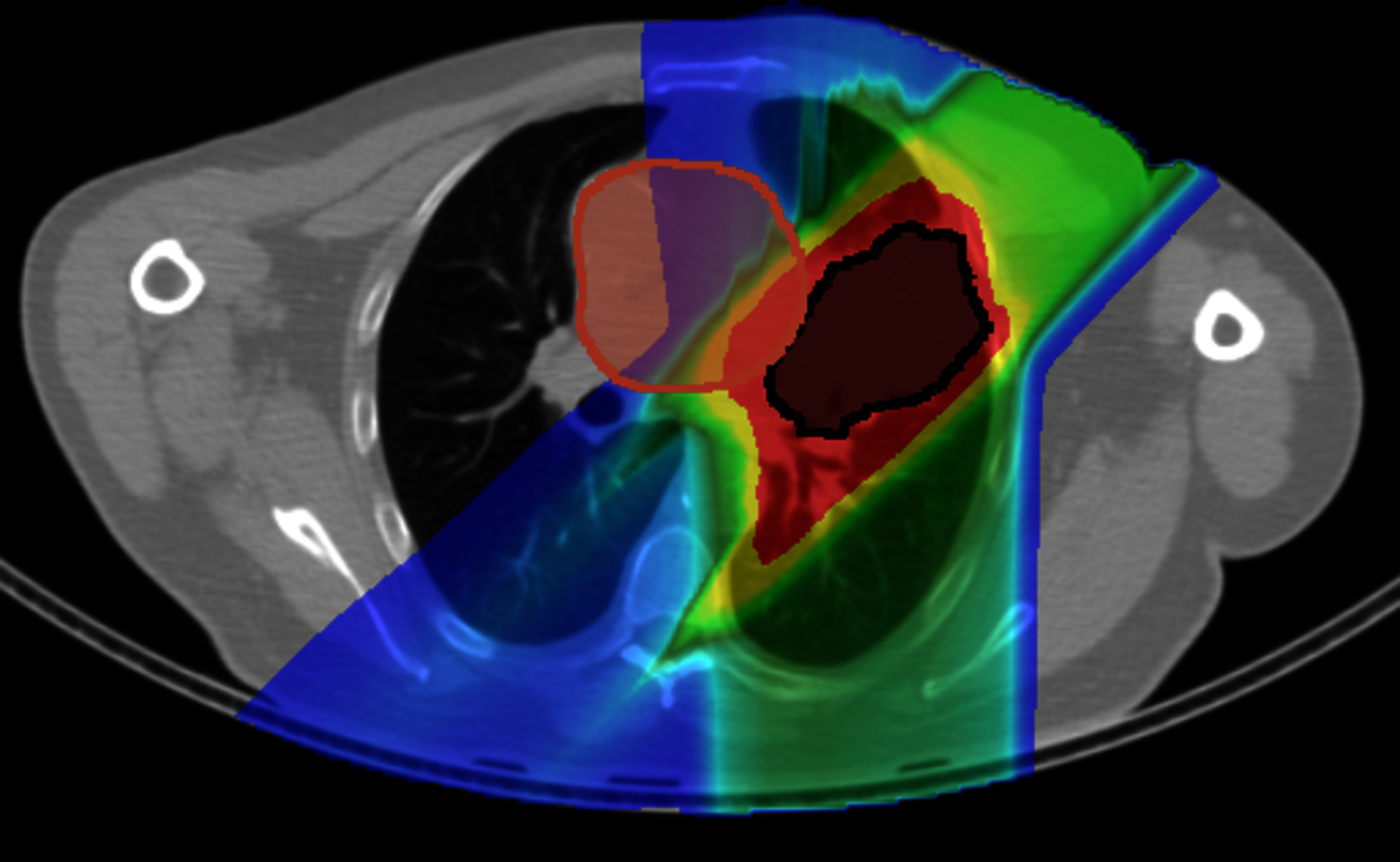Figure 3: Comparison of upright and supine carbon ion therapy against lung cance