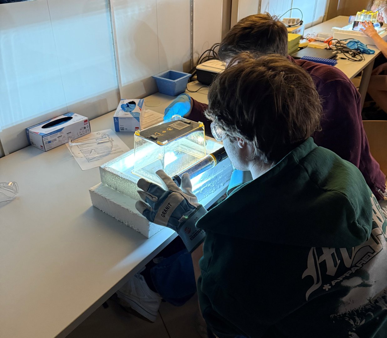 Wie kann man mit Detektoren das Unsichtbare sichtbar machen und was verrät uns das über radioaktive Zerfälle und kosmische Prozesse? Am Labortag bauen die Schüler*innen in Kleingruppen eigenständig eine Diffusionsnebelkammer und analysieren die darin sichtbaren Teilchenspuren. Die Nebelkammer ermöglicht dabei einen experimentellen Zugang zu Inhalten der Kern- und Teilchenphysik, die im regulären Unterricht häufig abstrakt bleiben.