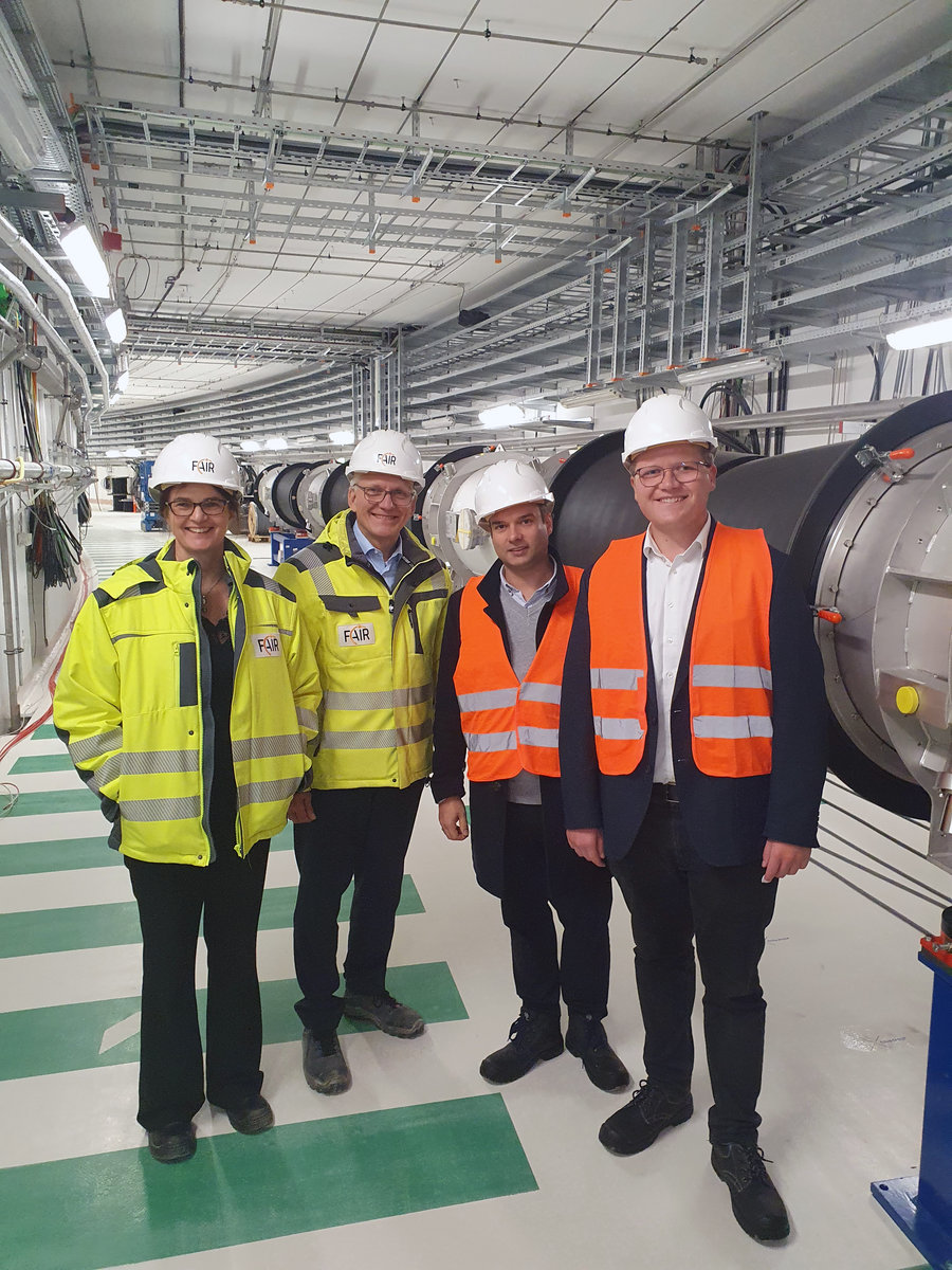 Der hessische Landtagsabgeordnete Sebastian Sommer (CDU) besuchte GSI/FAIR gemeinsam mit seinem Büroleiter Daniel Georgi, um sich über die wissenschaftlichen Aktivitäten sowie den Baufortschritt des internationalen Beschleunigerzentrums FAIR zu informieren. Empfangen wurden die Gäste von Prof. Dr. Thomas Nilsson, Wissenschaftlichem Geschäftsführer von GSI und FAIR, Dr. Katharina Stummeyer, Administrativer Geschäftsführerin von GSI und FAIR, Jörg Blaurock, Technischem Geschäftsführer von GSI und FAIR, sowie Dr. Ingo Peter aus der Presse- und Öffentlichkeitsarbeit.