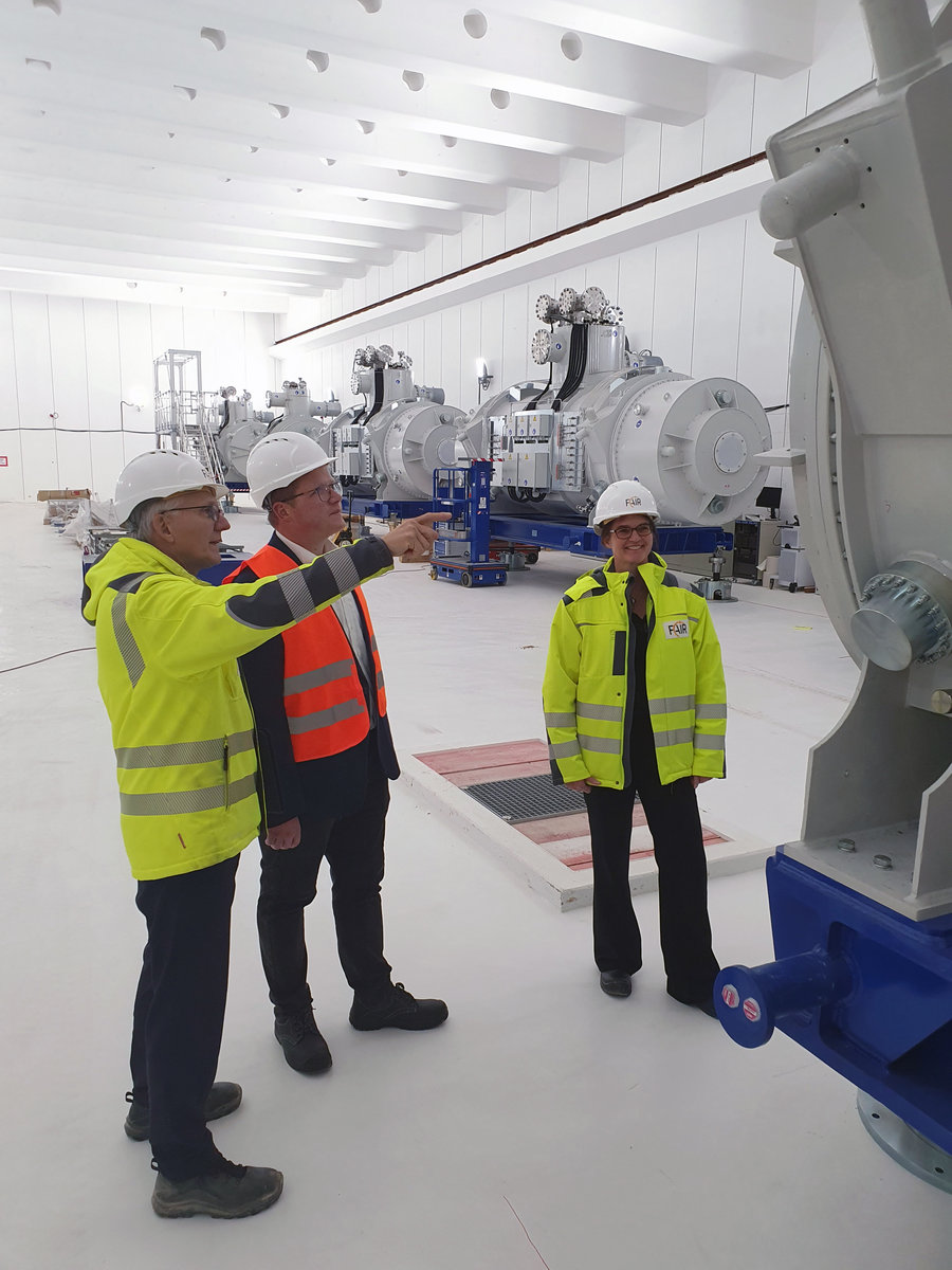 Nach einer einführenden Präsentation zu Forschung, Infrastruktur und dem Stand der Bauarbeiten, führte ein Rundgang über die FAIR-Baustelle zu wesentlichen Bereichen der im Aufbau befindlichen Großforschungsanlage. Besichtigt wurden unter anderem das Hauptversorgungsgebäude mit technischem Anlagenbereich und Dachplattform, der SIS100-Beschleunigertunnel, zentrale Strahlführungsstrukturen sowie Gebäude für die FAIR-Experimente CBM, Super-FRS sowie eines der NUSTAR-Experimente. Eine anschließende Tour durch die bestehende GSI-Anlage bot u.a. Einblicke in die medizinische Forschung zur Ionenstrahltherapie sowie Experimente wie HADES und R3B.