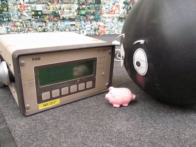 Das Helmholtz-Häkelschwein unternimmt eine Reise zu den verschiedenen Helmholtzzentren. Im April 2012 war es in der GSI und hat sich die Räumlichkeiten angeschaut. Hier erhält es eine Unterweisung von Dosie.