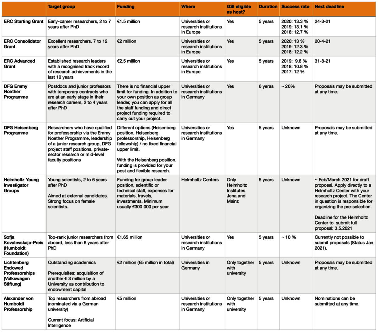 Die Tabelle zeigt die unterschiedlichen Förderinstrumente zum Aufbau einer eigenen Forschungsgruppe.